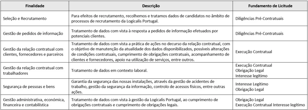 - Os Tratamentos de dados efetuados pela Logicalis Portugal são permitidos e legítimos quando se verifique pelo menos uma das seguintes situações:
